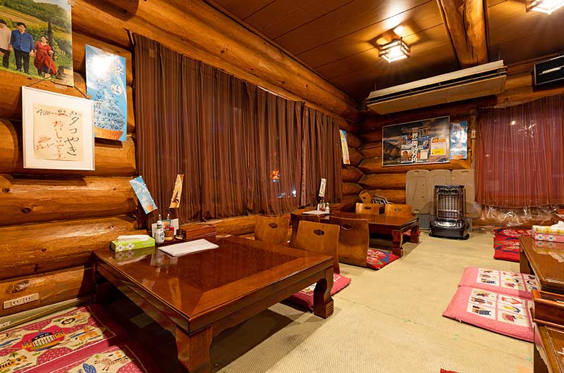 お店は、本場のカナダの丸太を使ったログハウス作り。夏は涼しく、冬は薪ストーブで温めるためとても快適です。カウンタ―、テーブル、小上がり席があり、お一人様からご家族様~団体様まで、さまざまなシーンでご利用可能。居酒屋としてだけではなく、お食事処としてもぜひご活用ください。ご来店をお待ちしております。